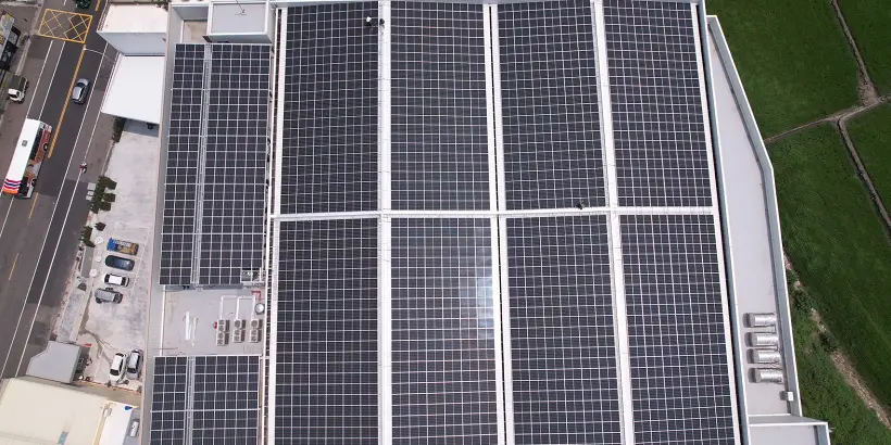 此系統建置於台中市大甲區,業主希望太陽能發電系統最大化,再設計規畫上利用熱浸鍍鋅鋼骨結構與RC屋頂結合,鋁支架涵蓋倉儲的鐵皮建物上最終全部再舖設太陽能模組,再發電綠色能源同時讓冷氣能源消耗降低,模組部份本案場採URE聯合再生能源單晶380W高效能,搭配台達電子變流器,HAMAK支架陽極加壓克力漆之防鏽處理,並取得結構技師計算簽證確保安全無虞。